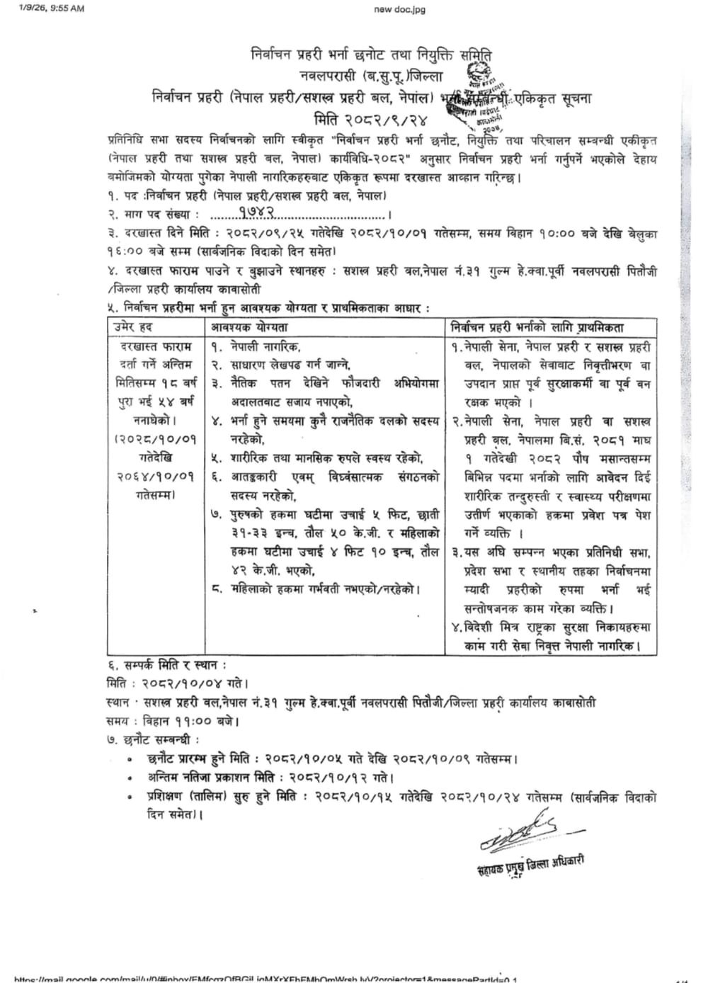 निर्वाचन प्रहरी भर्ना सम्बन्धी सूचना ।