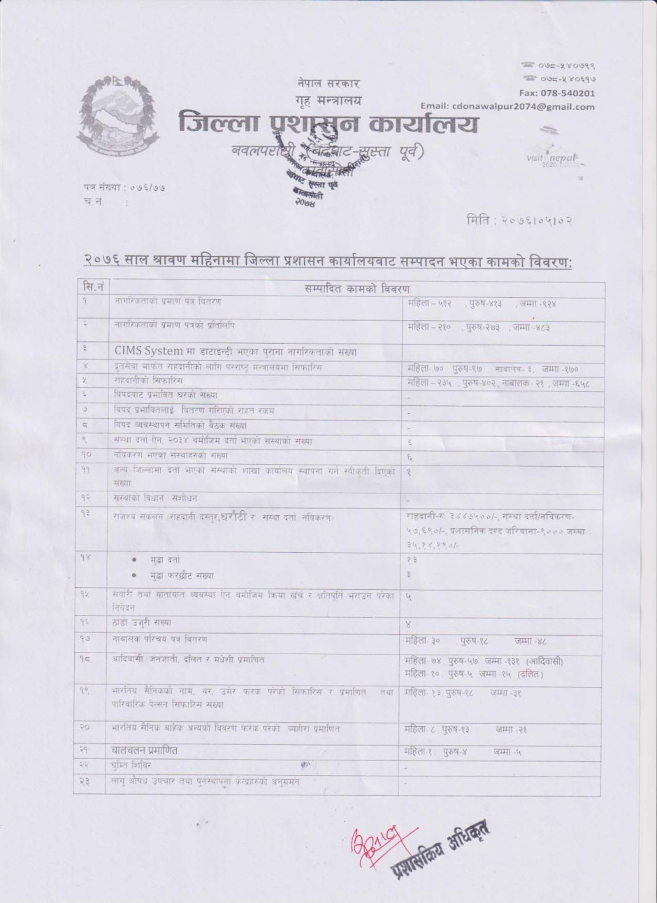 © सर्वाधिकार सुरक्षित जिल्ला प्रशासन कार्यालय, नवलपरासी (बर्दघाट सुस्ता पूर्व) .