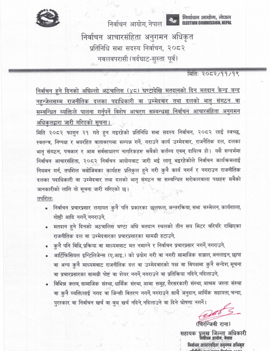 © सर्वाधिकार सुरक्षित जिल्ला प्रशासन कार्यालय, नवलपरासी (बर्दघाट सुस्ता पूर्व) .