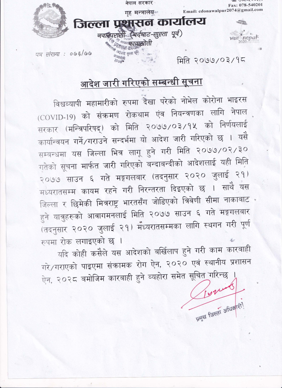 © सर्वाधिकार सुरक्षित जिल्ला प्रशासन कार्यालय, नवलपरासी (बर्दघाट सुस्ता पूर्व)