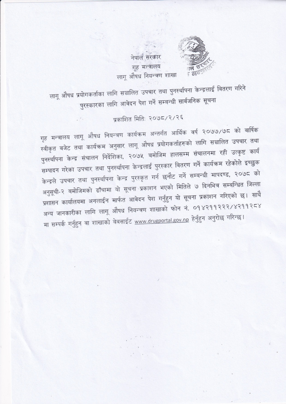 आवेदन पेश गर्ने सम्बन्धी सार्वजनिक सूचना ।