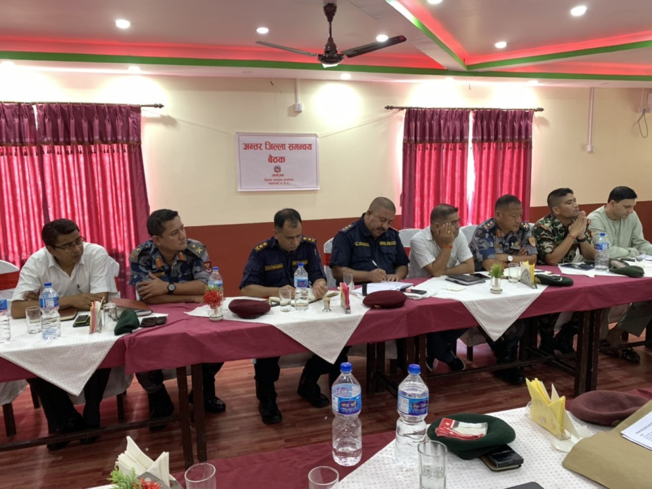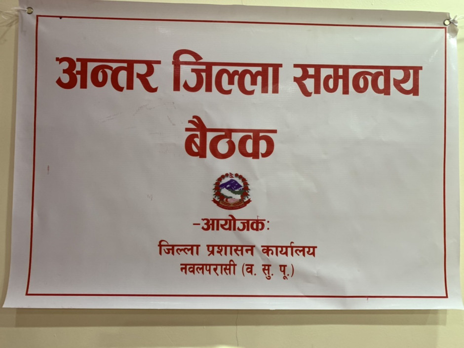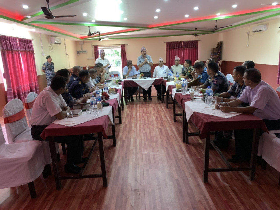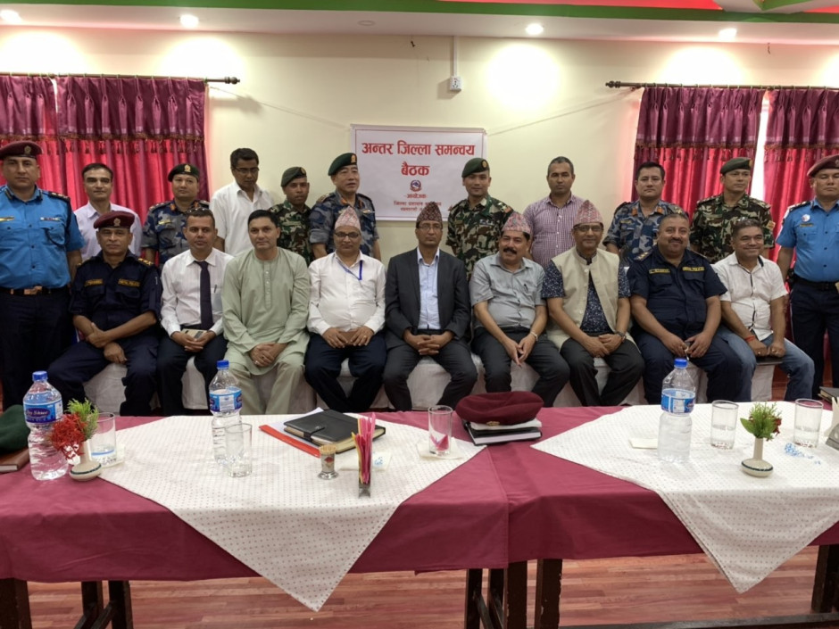 मिति २०७६।०४।०३ गते यस कार्यालयको संयोजनमा नवलपरासी (बर्दघाट सुस्ता पश्चिम), चितवन र तँनहु जिल्लाका सुरक्षा निकायका प्रमुखहरु बिच अन्तर जिल्ला समन्वय बैठक सम्पन्न भएको ।
