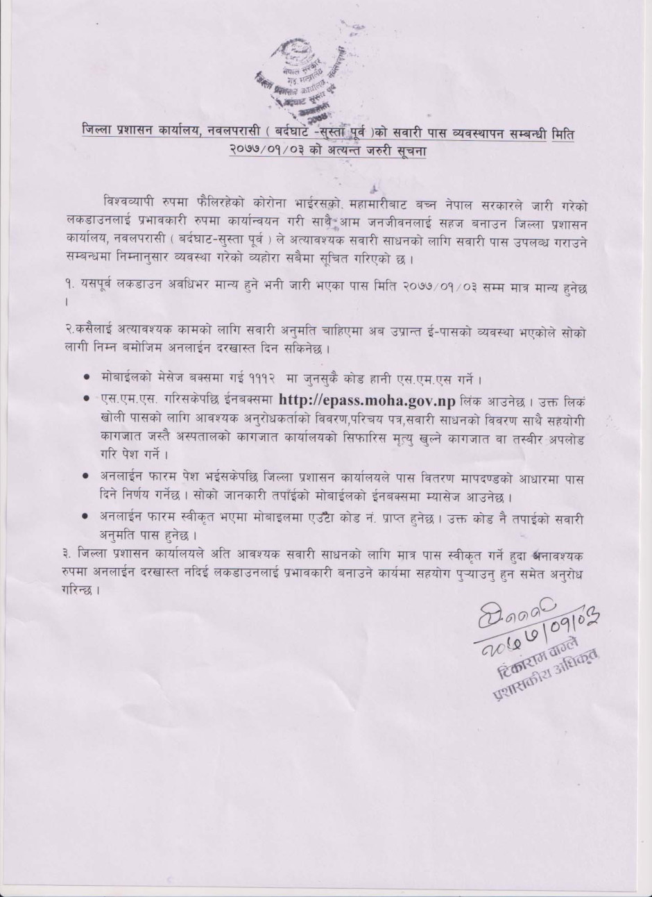 © सर्वाधिकार सुरक्षित जिल्ला प्रशासन कार्यालय, नवलपरासी (बर्दघाट सुस्ता पूर्व)