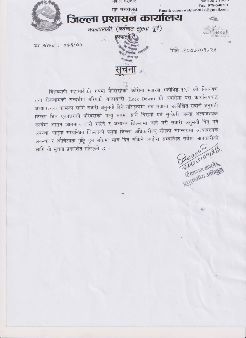 © सर्वाधिकार सुरक्षित जिल्ला प्रशासन कार्यालय, नवलपरासी (बर्दघाट सुस्ता पूर्व)