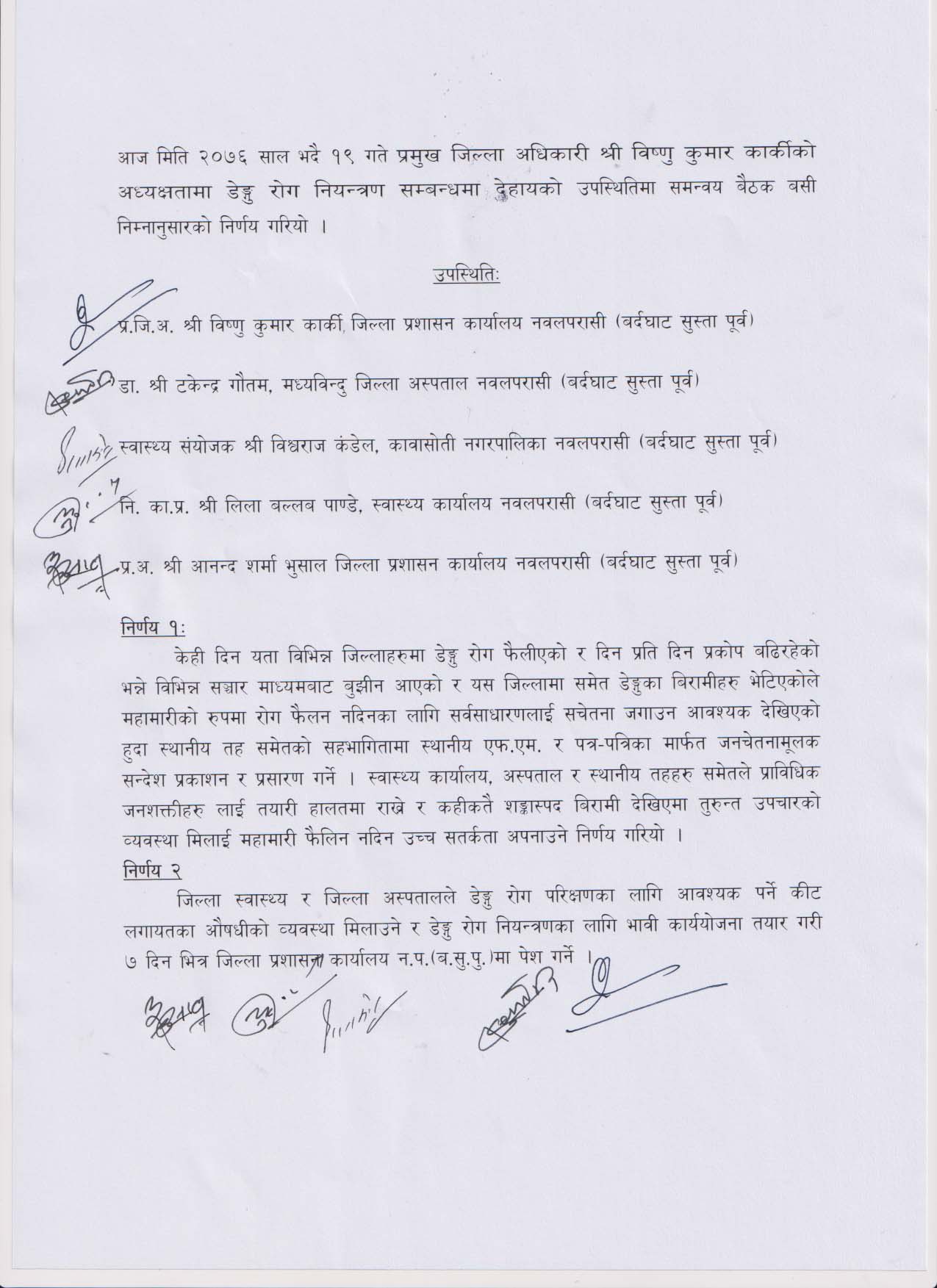 डेङ्गु रोग नियन्त्रण सम्बन्धि बैठको निर्णय