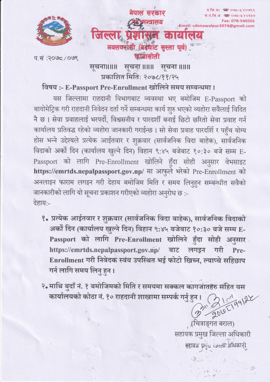 E-passport Pre-Enrollment खोलिने समय सम्बन्धी सूचना