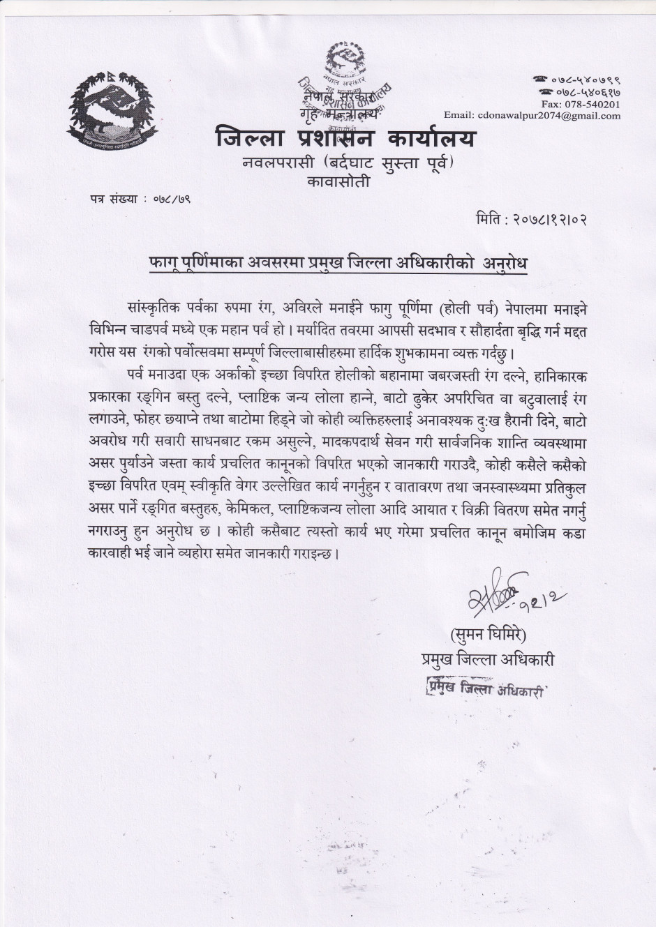 फागू पूर्णिमाका अवसरमा प्रमुख जिल्ला अधिकारीको अनुरोध