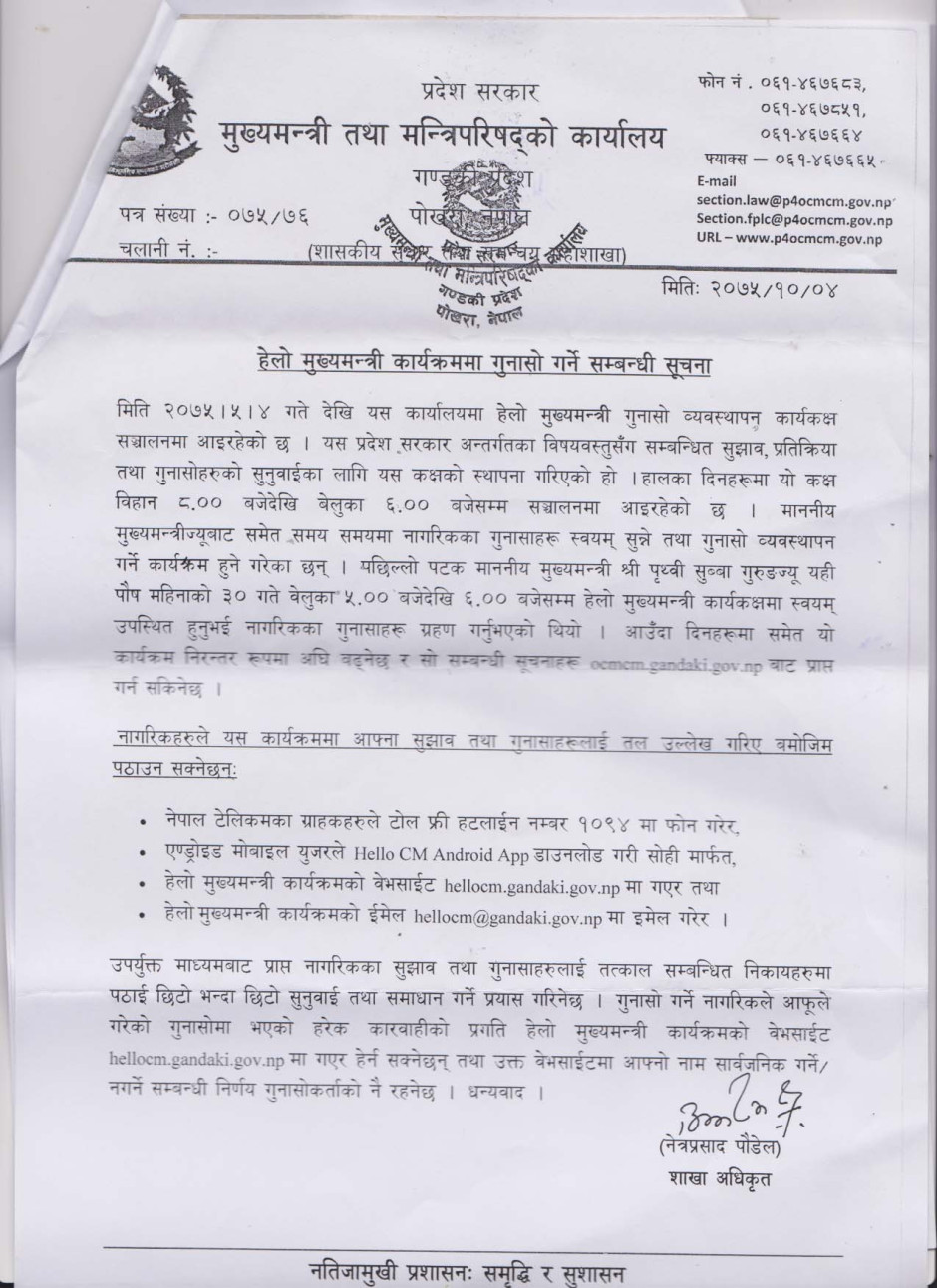 हेलो मुख्यमन्त्री कार्यक्रममा गुनासो गर्ने सम्बन्धी सूचना
