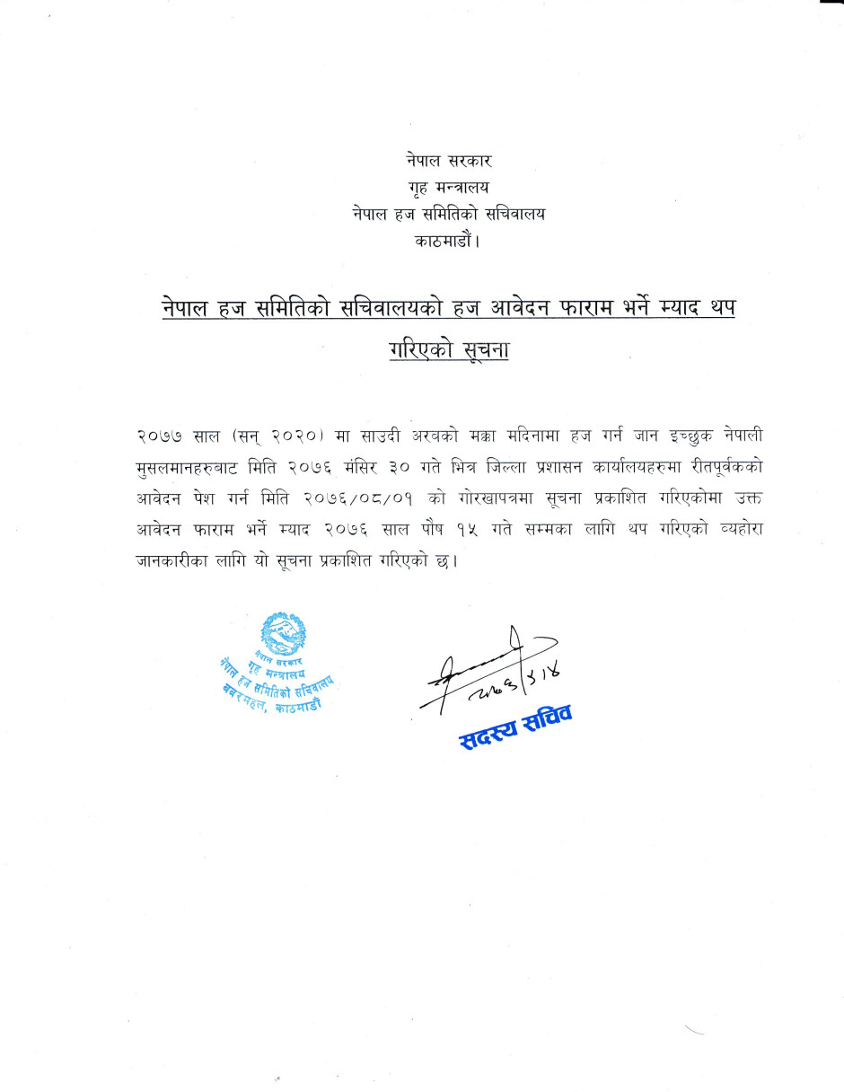 हज आवेदन फारम भर्ने म्याद थप गरिएको सूचना