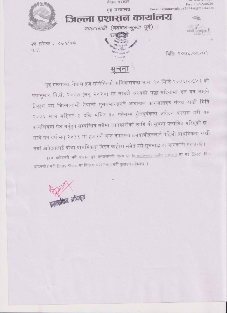 © सर्वाधिकार सुरक्षित जिल्ला प्रशासन कार्यालय, नवलपरासी (बर्दघाट सुस्ता पूर्व)