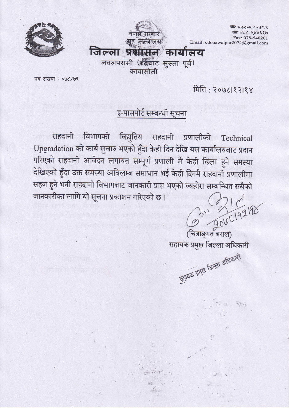 © सर्वाधिकार सुरक्षित जिल्ला प्रशासन कार्यालय, नवलपरासी (बर्दघाट सुस्ता पूर्व)