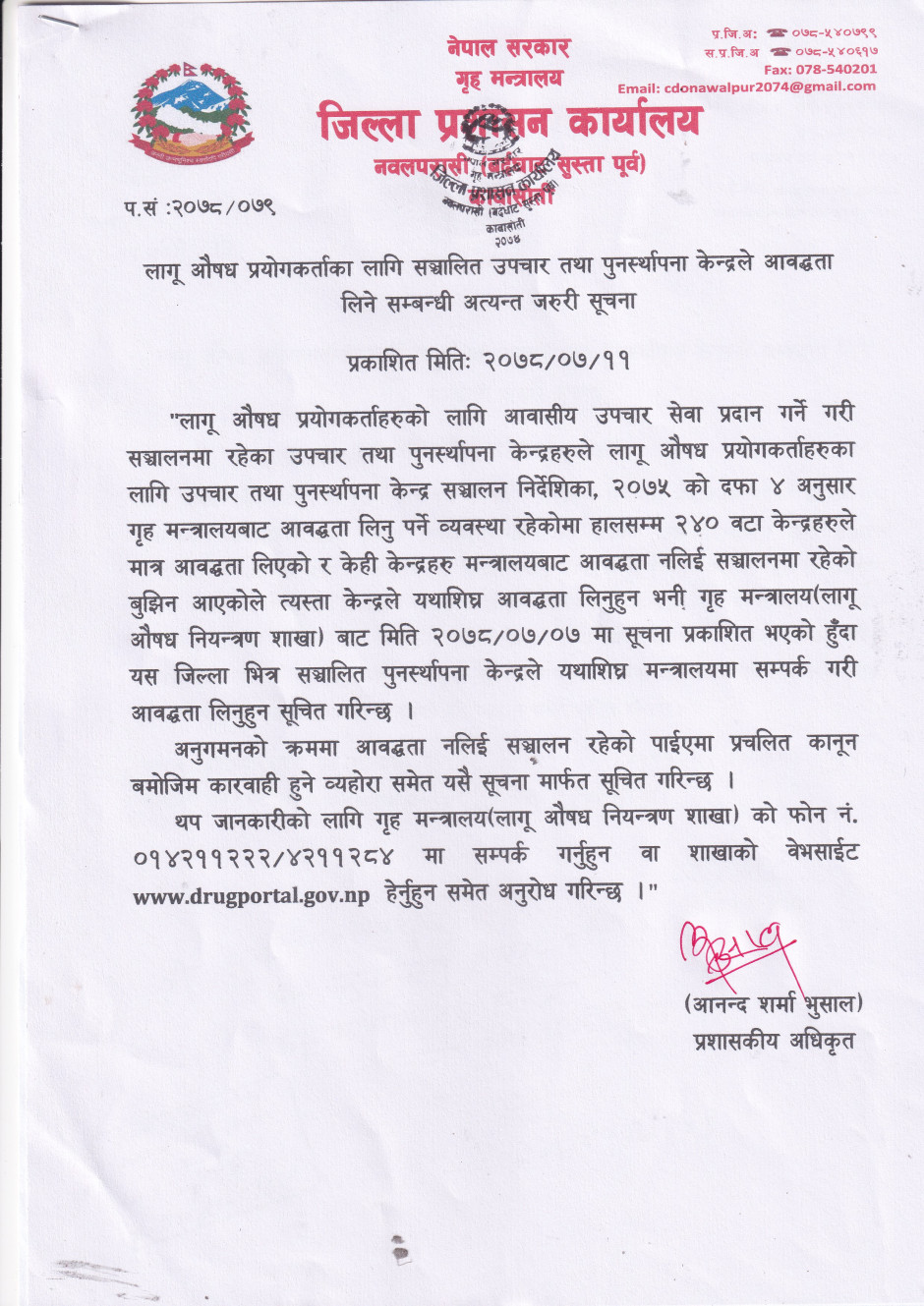 © सर्वाधिकार सुरक्षित जिल्ला प्रशासन कार्यालय, नवलपरासी (बर्दघाट सुस्ता पूर्व) .