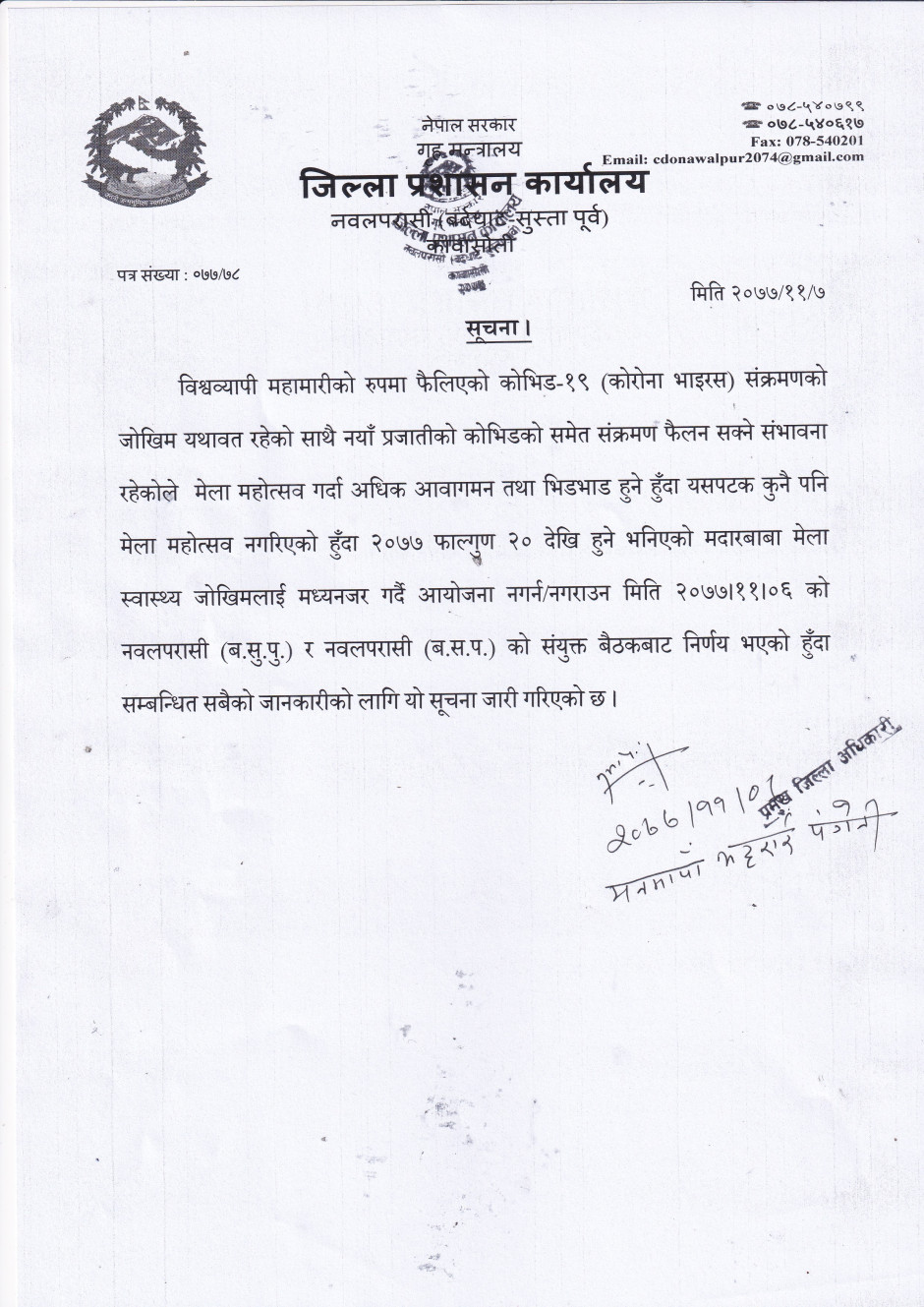 © सर्वाधिकार सुरक्षित जिल्ला प्रशासन कार्यालय, नवलपरासी (बर्दघाट सुस्ता पूर्व)