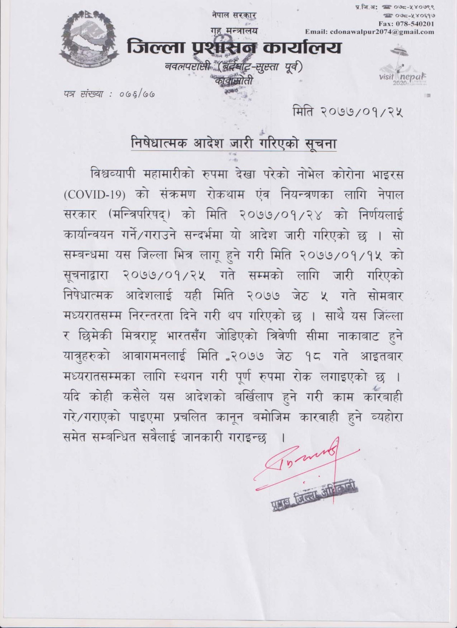© सर्वाधिकार सुरक्षित जिल्ला प्रशासन कार्यालय, नवलपरासी (बर्दघाट सुस्ता पूर्व)