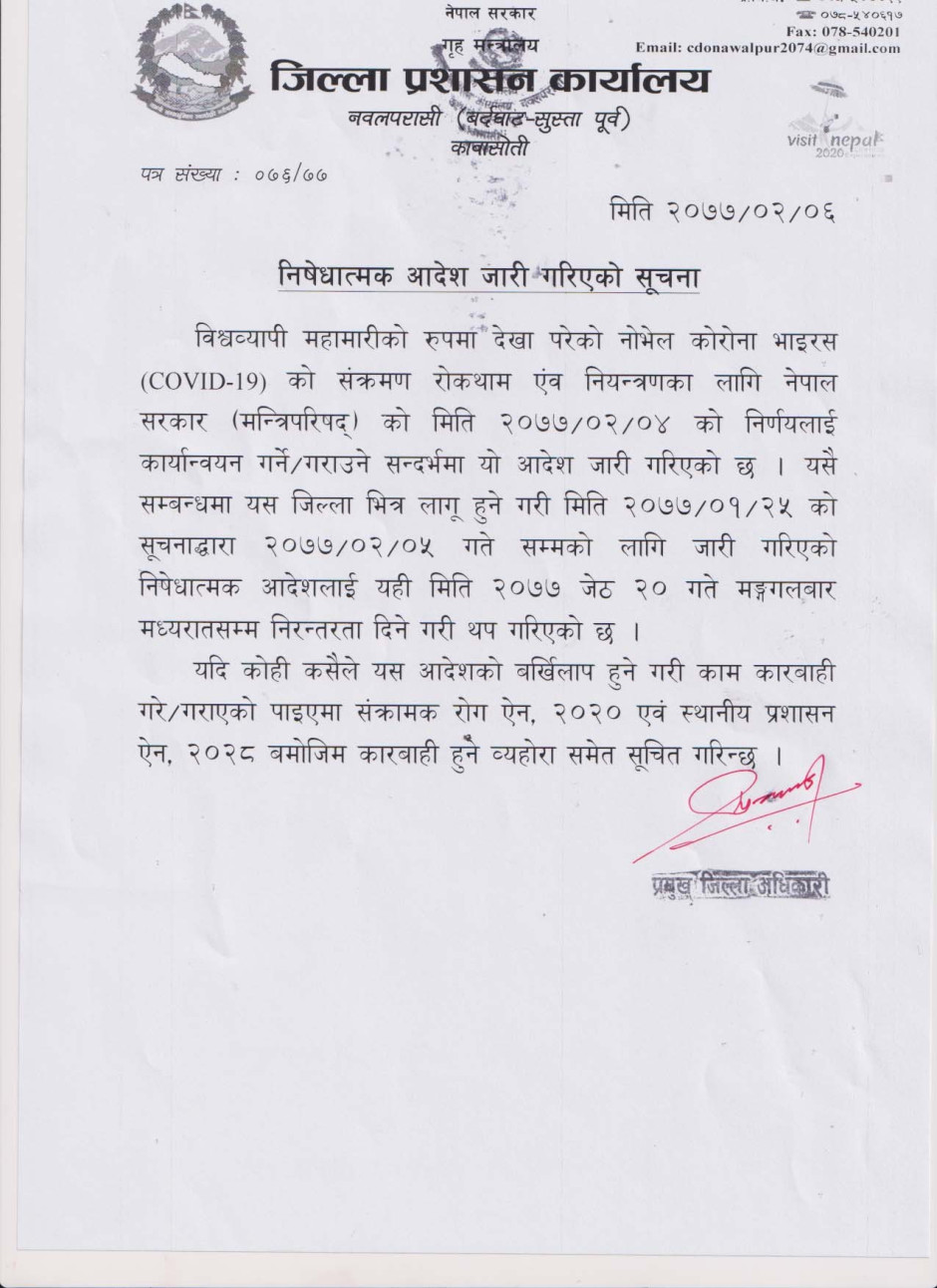 © सर्वाधिकार सुरक्षित जिल्ला प्रशासन कार्यालय, नवलपरासी (बर्दघाट सुस्ता पूर्व)