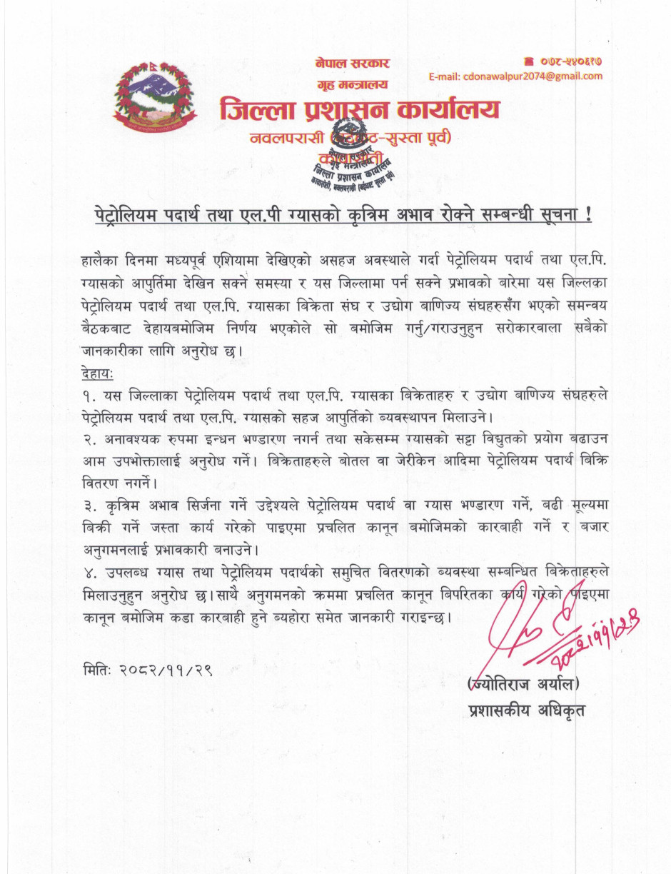 © सर्वाधिकार सुरक्षित जिल्ला प्रशासन कार्यालय, नवलपरासी (बर्दघाट सुस्ता पूर्व) .