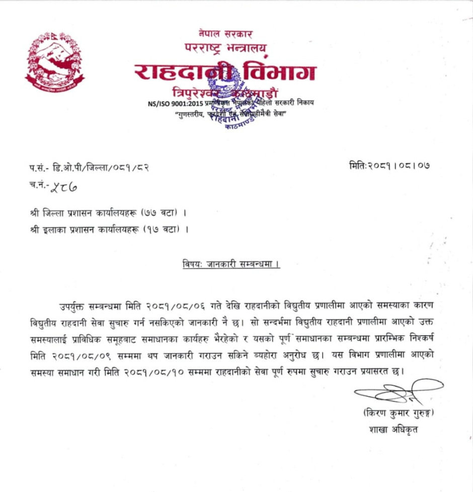 तस्बिर : राहदानी सेवा बन्द हुने सम्बन्धमा जरुरी सूचना।