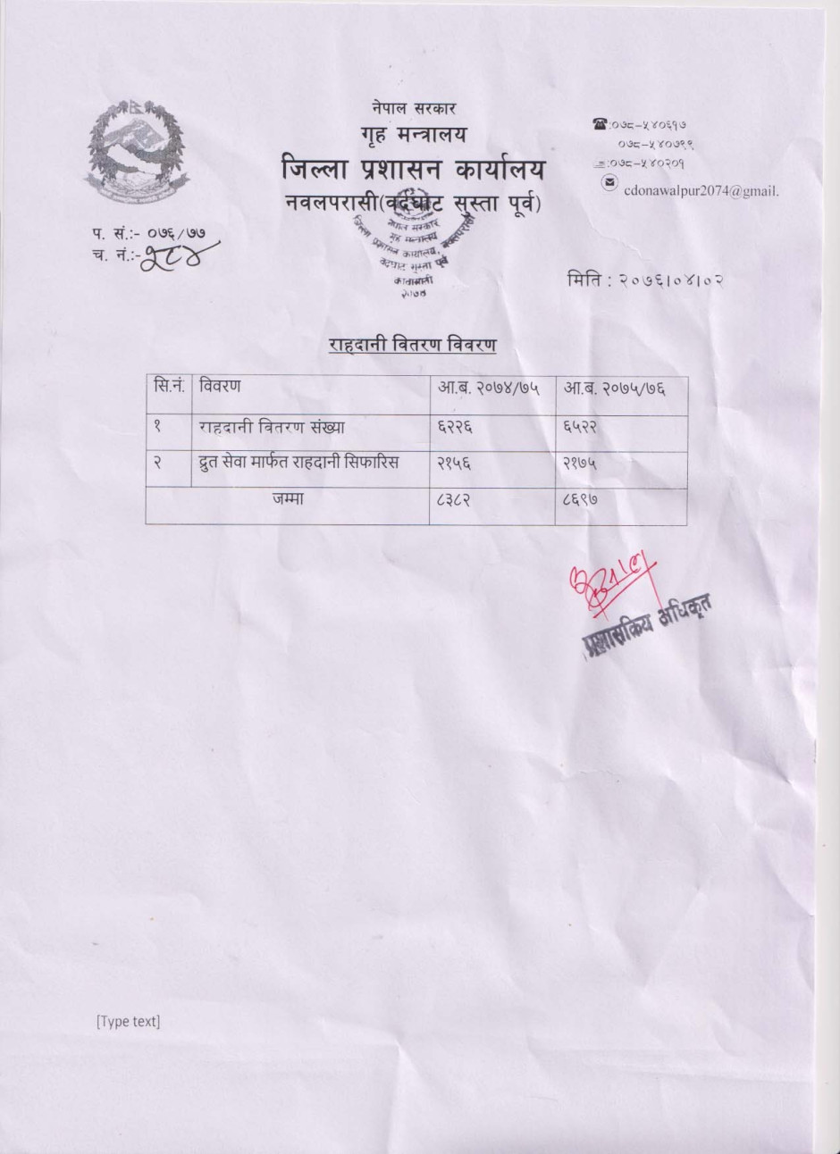 © सर्वाधिकार सुरक्षित जिल्ला प्रशासन कार्यालय, नवलपरासी (बर्दघाट सुस्ता पूर्व) .