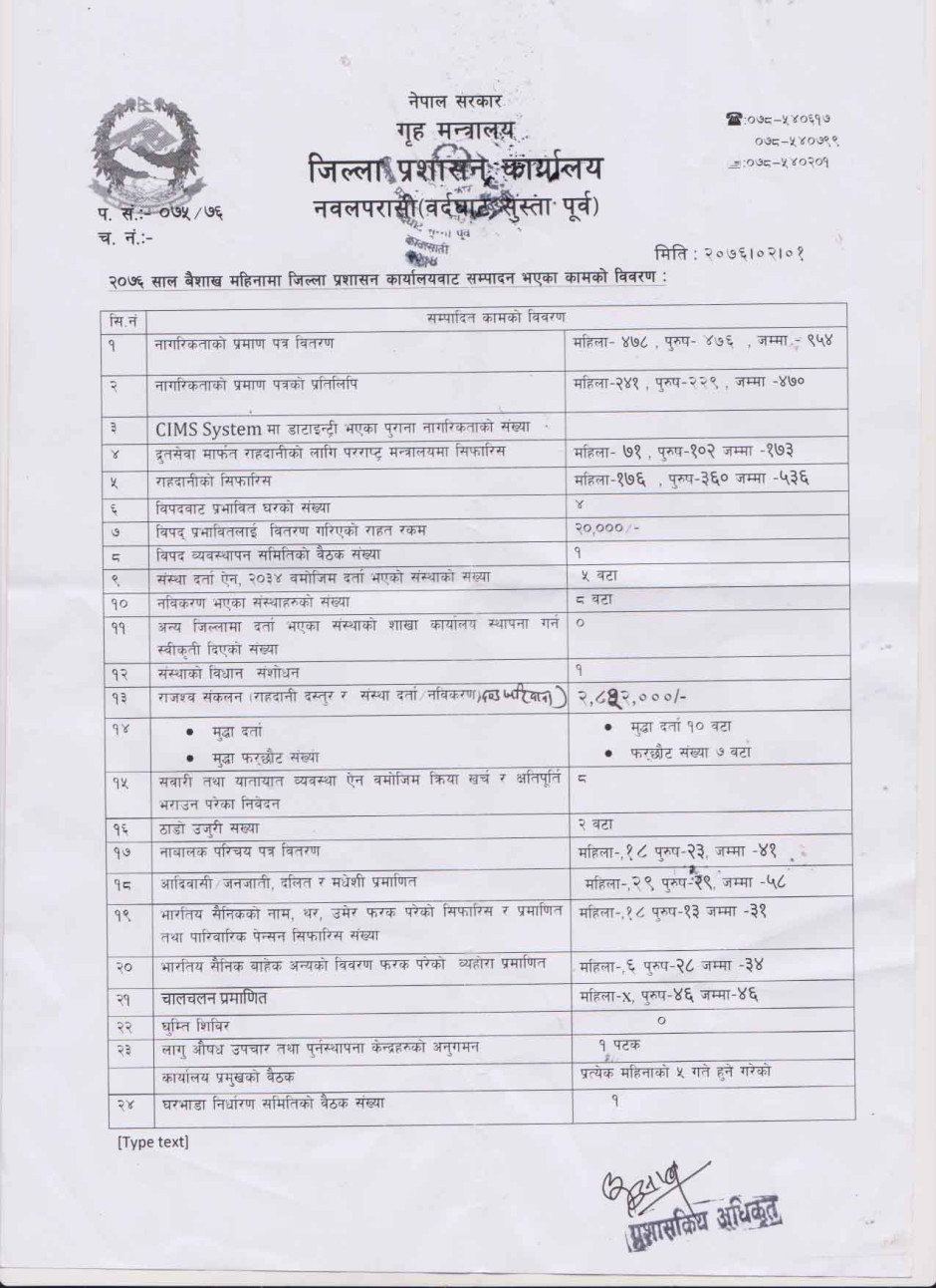 © सर्वाधिकार सुरक्षित जिल्ला प्रशासन कार्यालय, नवलपरासी (बर्दघाट सुस्ता पूर्व) .