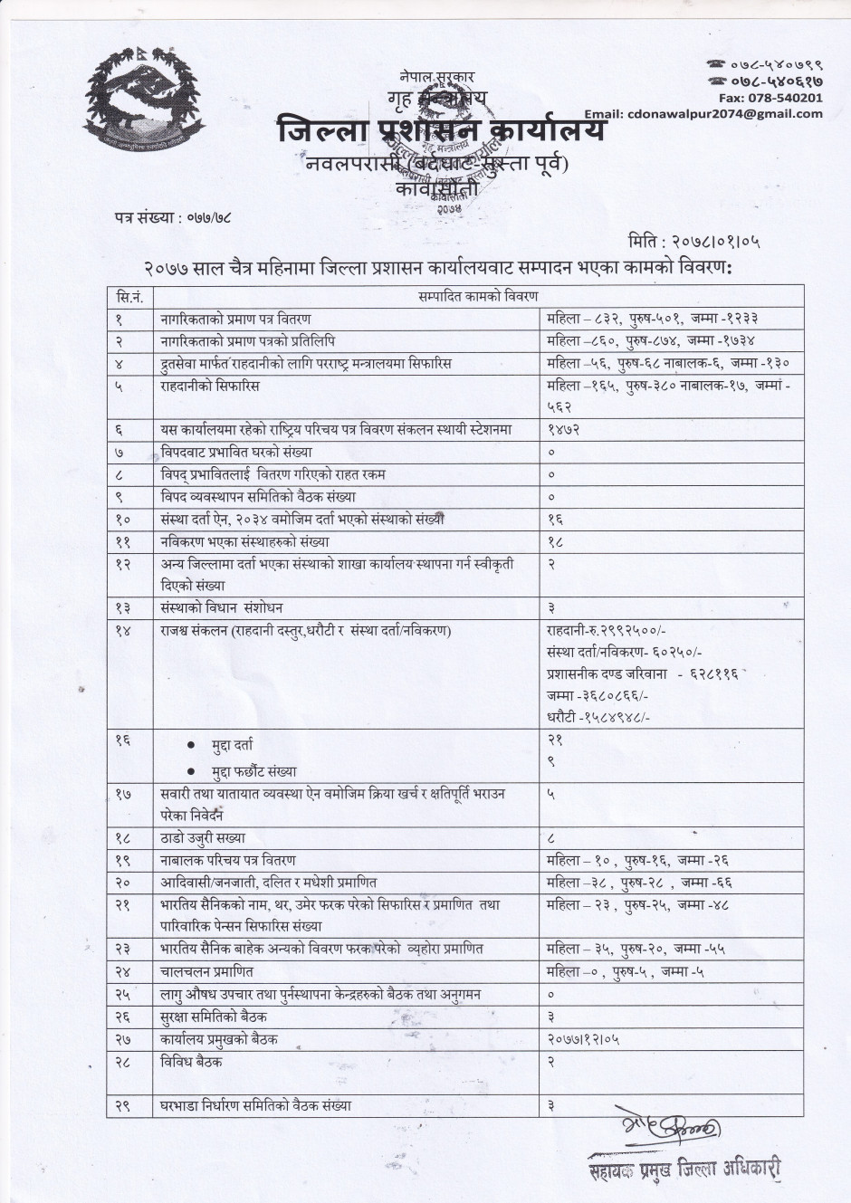 © सर्वाधिकार सुरक्षित जिल्ला प्रशासन कार्यालय, नवलपरासी (बर्दघाट सुस्ता पूर्व) .