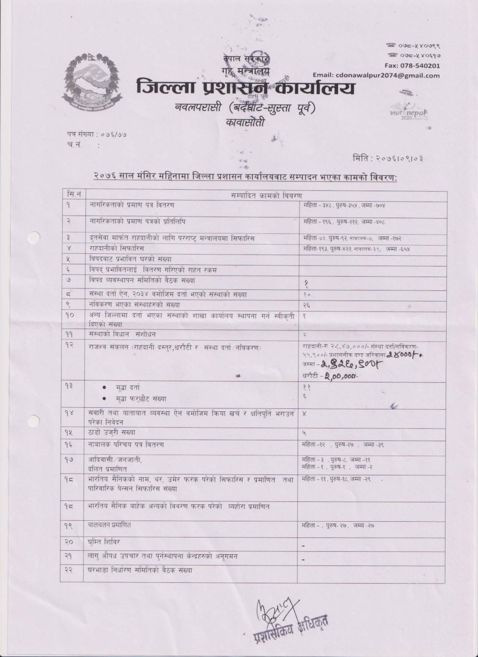 © सर्वाधिकार सुरक्षित जिल्ला प्रशासन कार्यालय, नवलपरासी (बर्दघाट सुस्ता पूर्व) .