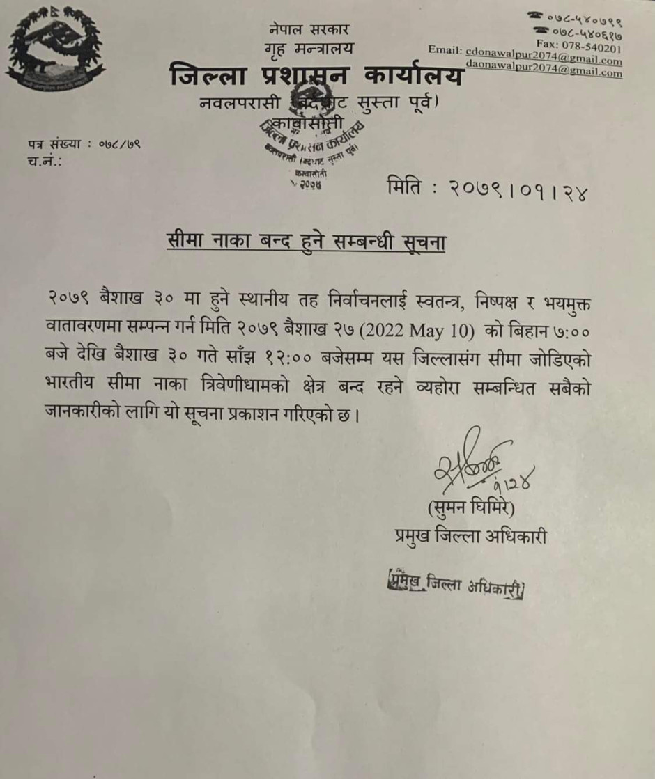 सीमा नाका बन्द हुने...
