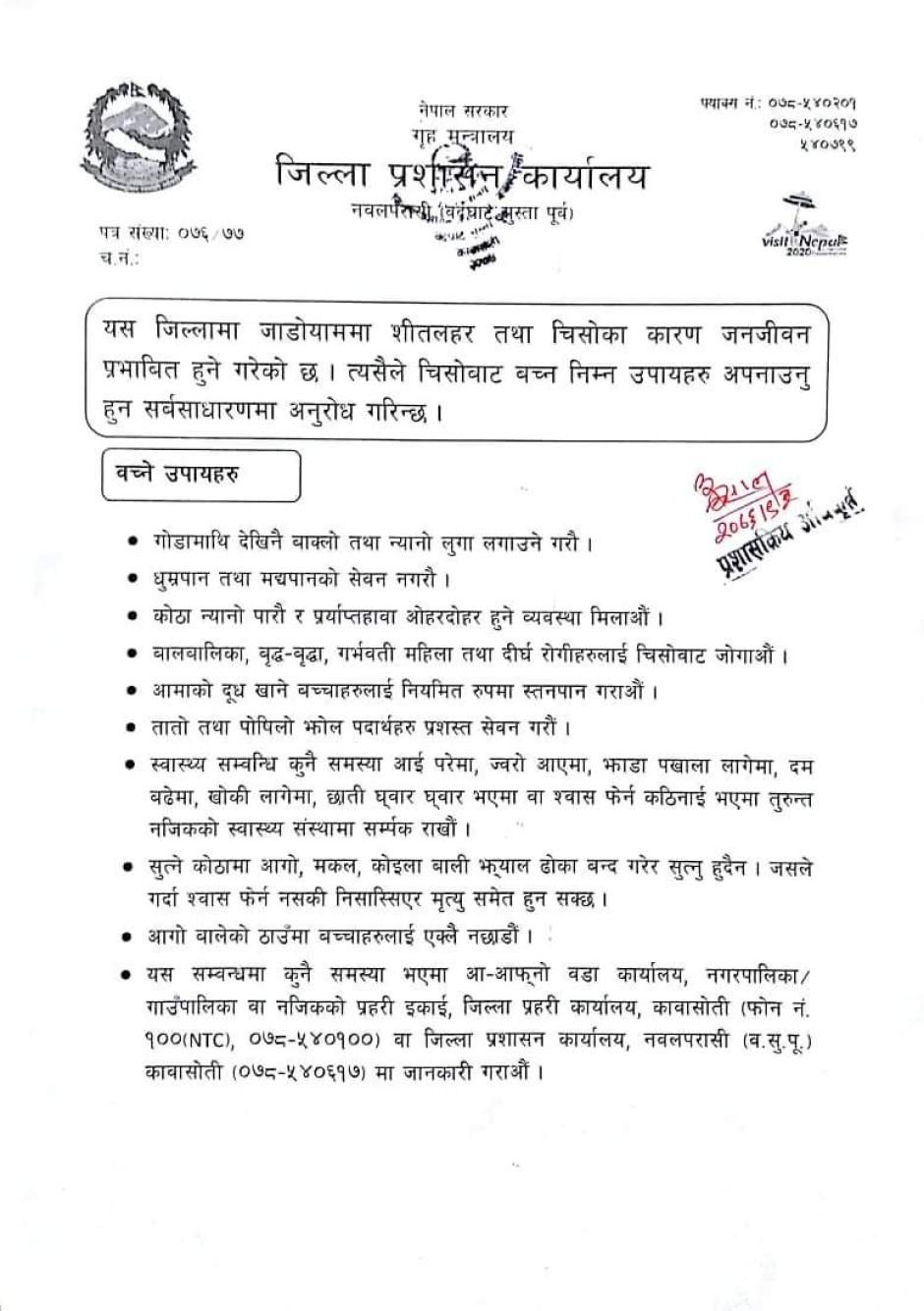शीतलहर तथा चीसोमाअपनाउनु पर्ने सावधानी सम्बन्धि सूचना