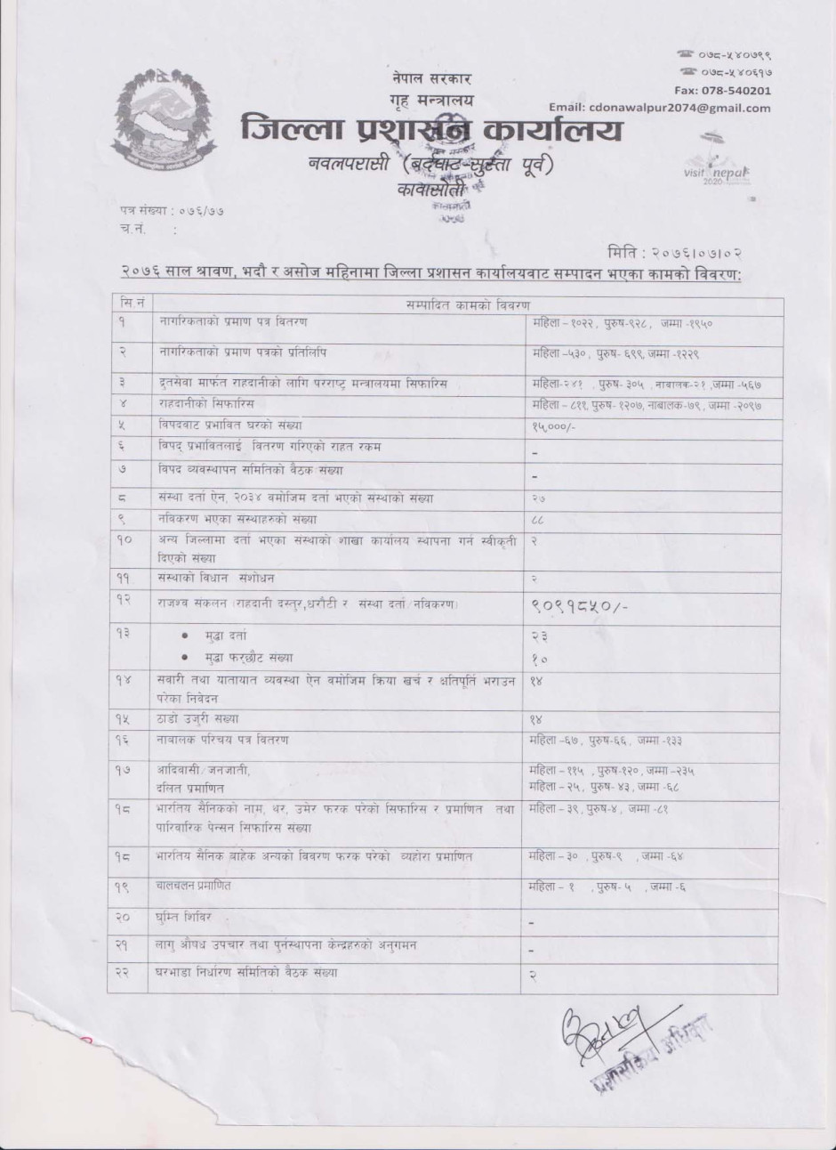 © सर्वाधिकार सुरक्षित जिल्ला प्रशासन कार्यालय, नवलपरासी (बर्दघाट सुस्ता पूर्व) .